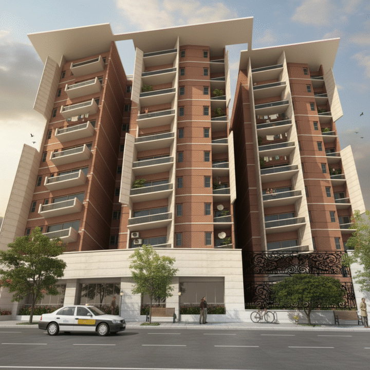As the architect of Khan Dreams, I envisioned the development as a composition of raw material honesty and contemporary structural expression. The exterior is defined by fair-faced concrete, exposed structural lines, and hand-crafted facing bricks, creating a warm, textured façade that responds to Dhaka’s climate while maintaining a timeless presence. Deep balconies, vertical shading elements, and carefully oriented openings mitigate heat gain and promote natural ventilation throughout the towers. The result is a performance-oriented architectural envelope that enhances comfort, reduces energy dependency, and allows each home to breathe naturally.