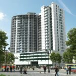 The façade expresses the raw beauty of fair-faced concrete contrasted with brick textures, resulting in a naturally weathering, low-maintenance exterior. These materials create shifting light and shadow patterns, adding depth and sculptural character to the building throughout the day. Integrated planters and green pockets soften the vertical mass and strengthen the project’s biophilic qualities. The rooftop levels of each tower offer semi-open terraces with panoramic city views—providing residents with serene communal spaces above the urban bustle.